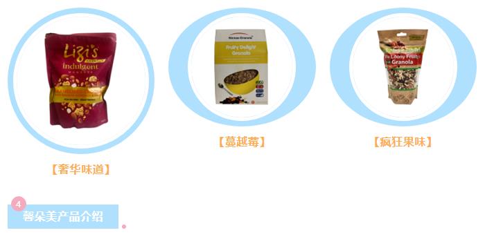 • 果味怡人格蘭諾拉麥片:含有蔓越莓,包裝宣稱指出蔓越莓是一種超級食品,因為其中富含營養元素和抗氧化成分,還被美洲土著人群用于治療膀胱和腎臟疾病。(尼日利亞)