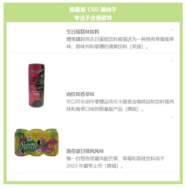 香精仍然是CSD市場的核心創新戰場,繼續使用新的香精和香精組合作為建立新奇和創新的一種配方設計方式。