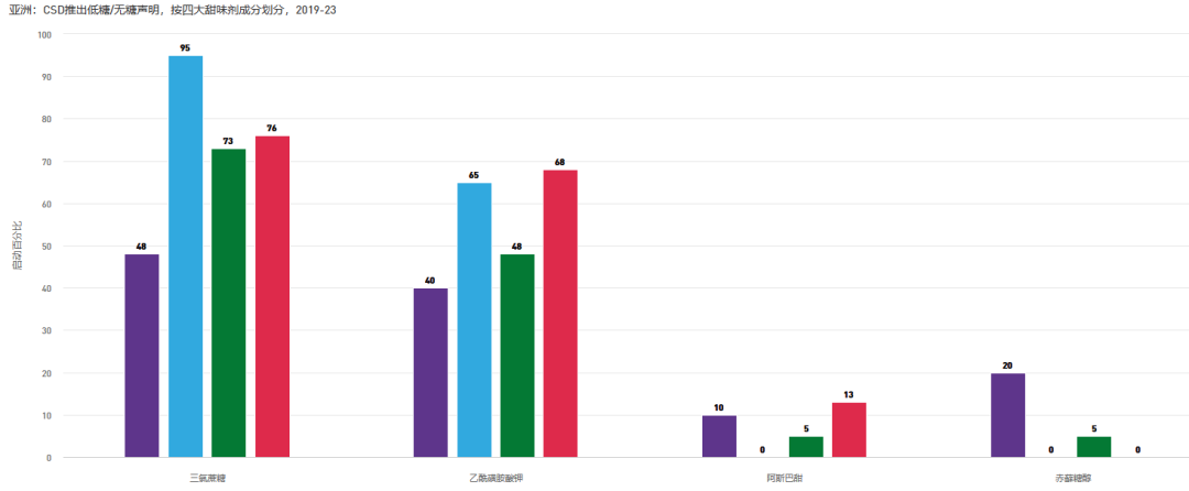 亞洲的CSD公司一直在積極投資零糖配方,無糖和低熱量或低熱量或減少卡路里的聲明在該地區的推出中繼續增加。與此同時,中國消費者對氣泡飲料中使用的糖替代品,并了解了關鍵的甜味劑赤蘚糖醇。