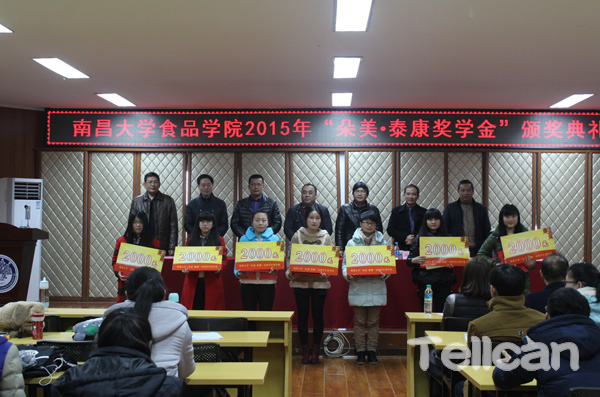 食品學院黨委書記譚杰宣布了2015年“朵美.泰康”獎學金獲獎同學名單。此次共有30名同學獲獎,其中15名同學榮獲“朵美·泰康”優秀學生獎學金、15名同學榮獲“朵美·泰康”自學成才獎學金。隨后,與會嘉賓與校、院領導一同為獲獎同學頒獎并合影留念。