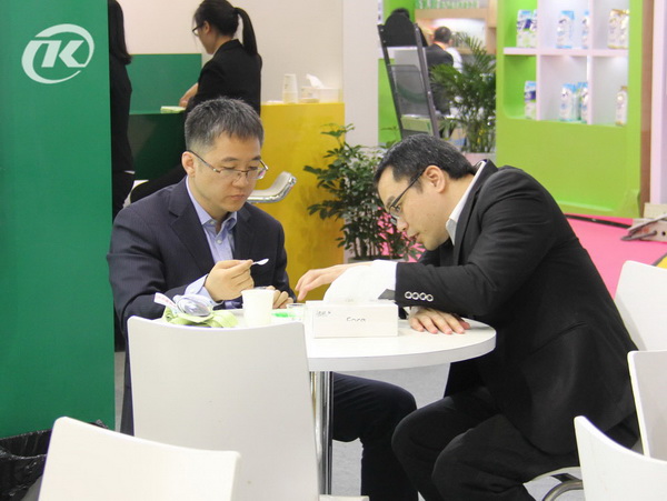 參展期間,參觀品嘗的客戶絡繹不絕,其中有一個客戶在品嘗“悠享”酸奶后,當即決定采購產品中試,稱一直在尋找類似的產品,但是一直沒有成功,很慶幸能在展會找到我們。其實我們更開心的是朵美的產品得到了客戶的認可,所有付出都是值得的,也正因為伴著你們的支持,泰康才一路走到現在,不斷發展壯大。