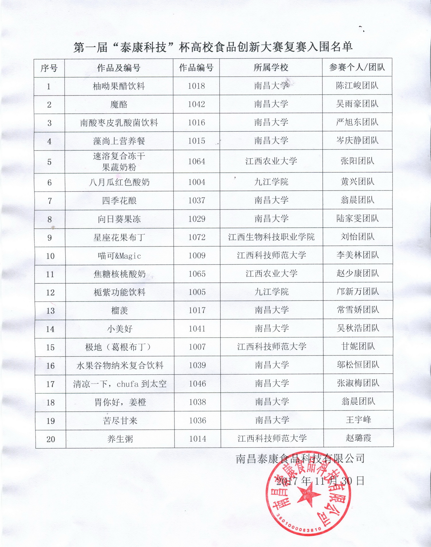 以上名單不記排名,復賽規則于2017年12月1日在網站公布,并逐一發送至復賽者郵箱,請注意查收。